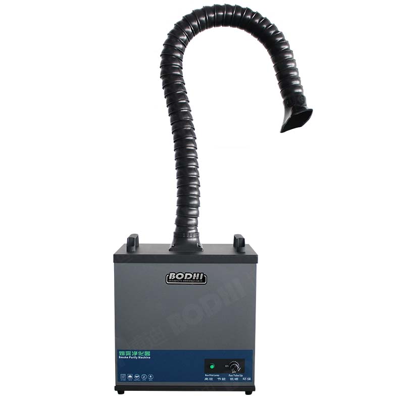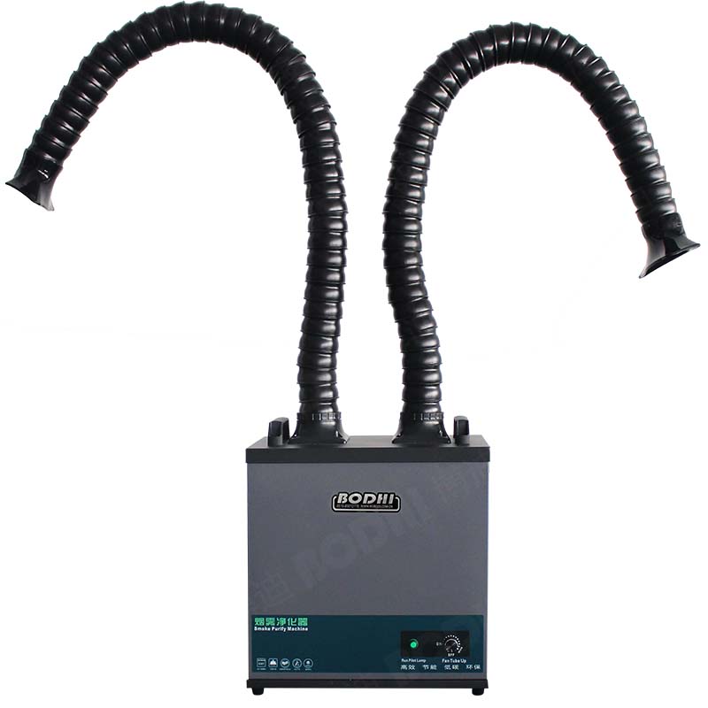 HCD-XH系列焊锡焊烟净化器是博迪制作的一款迷你焊烟净化器。它是针对少量焊烟的工况开发设计的。它体积小巧、适应能力强、压力充足、风量平和,是小型焊烟净化器中比较受欢迎的一款。HCD-XH系列小型焊烟净化器具有三级过滤结构:一级为初效过滤器,用于阻挡火星、收集大颗粒粉尘;二级为细小粉尘过滤器,三级为高效过滤器。HCD-XH系列锡焊烟尘净化器的过滤效率达99.9%以上。